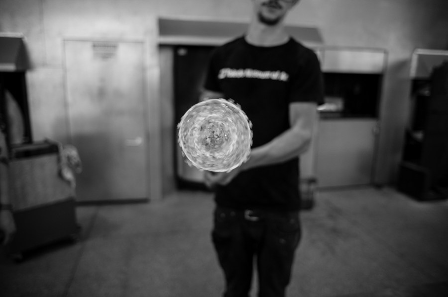 Ryan Thompson blows glass art at the Glass Pavilion in Toledo, OH.